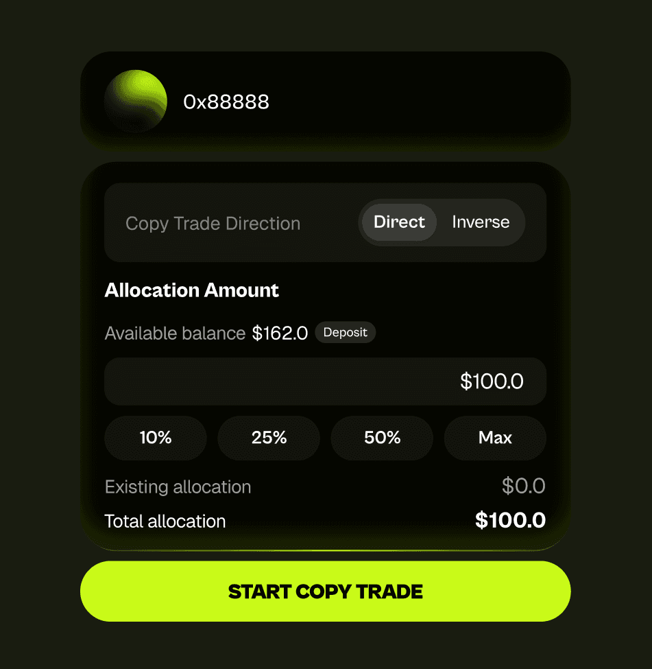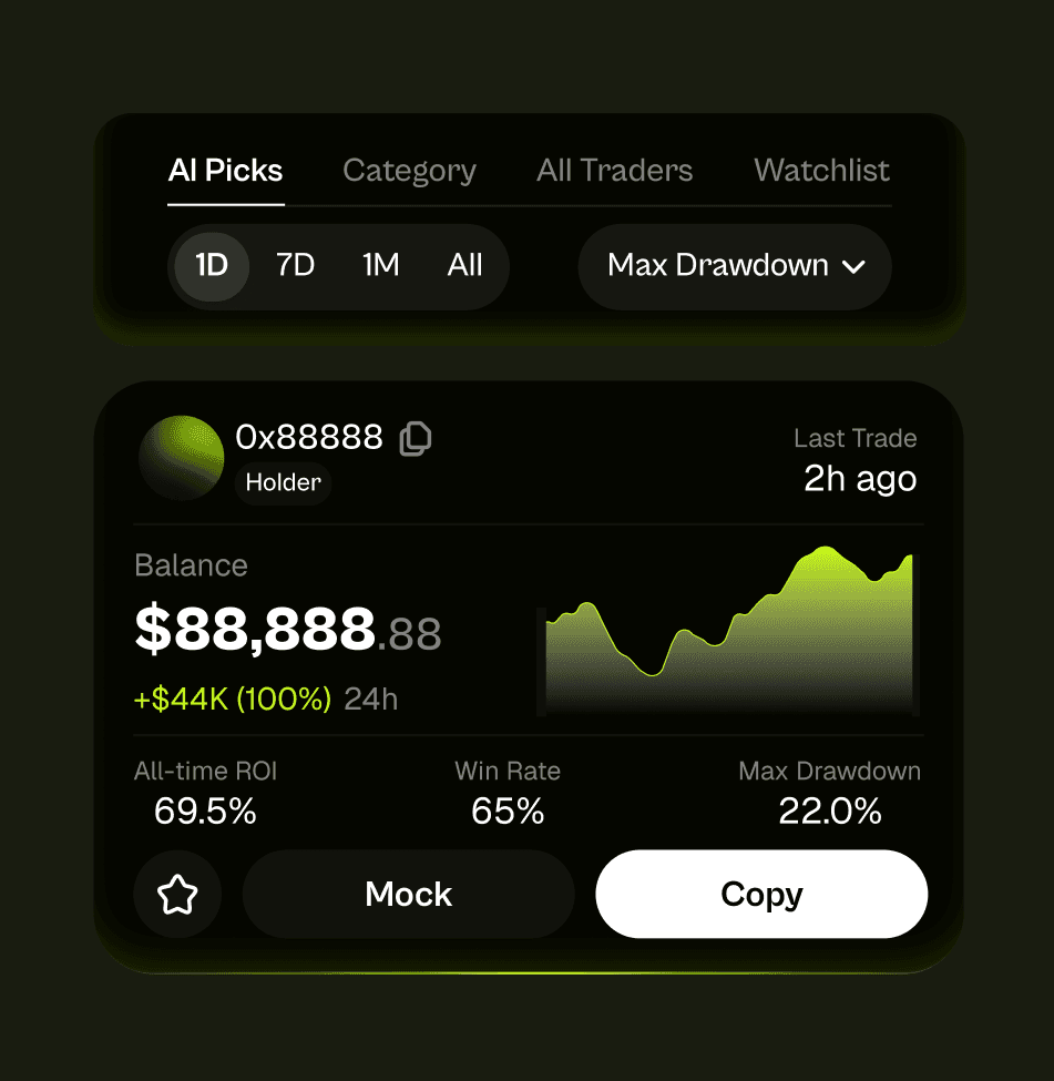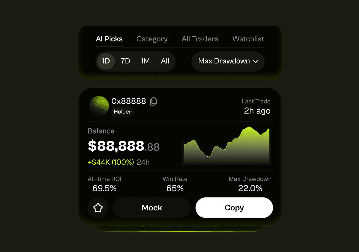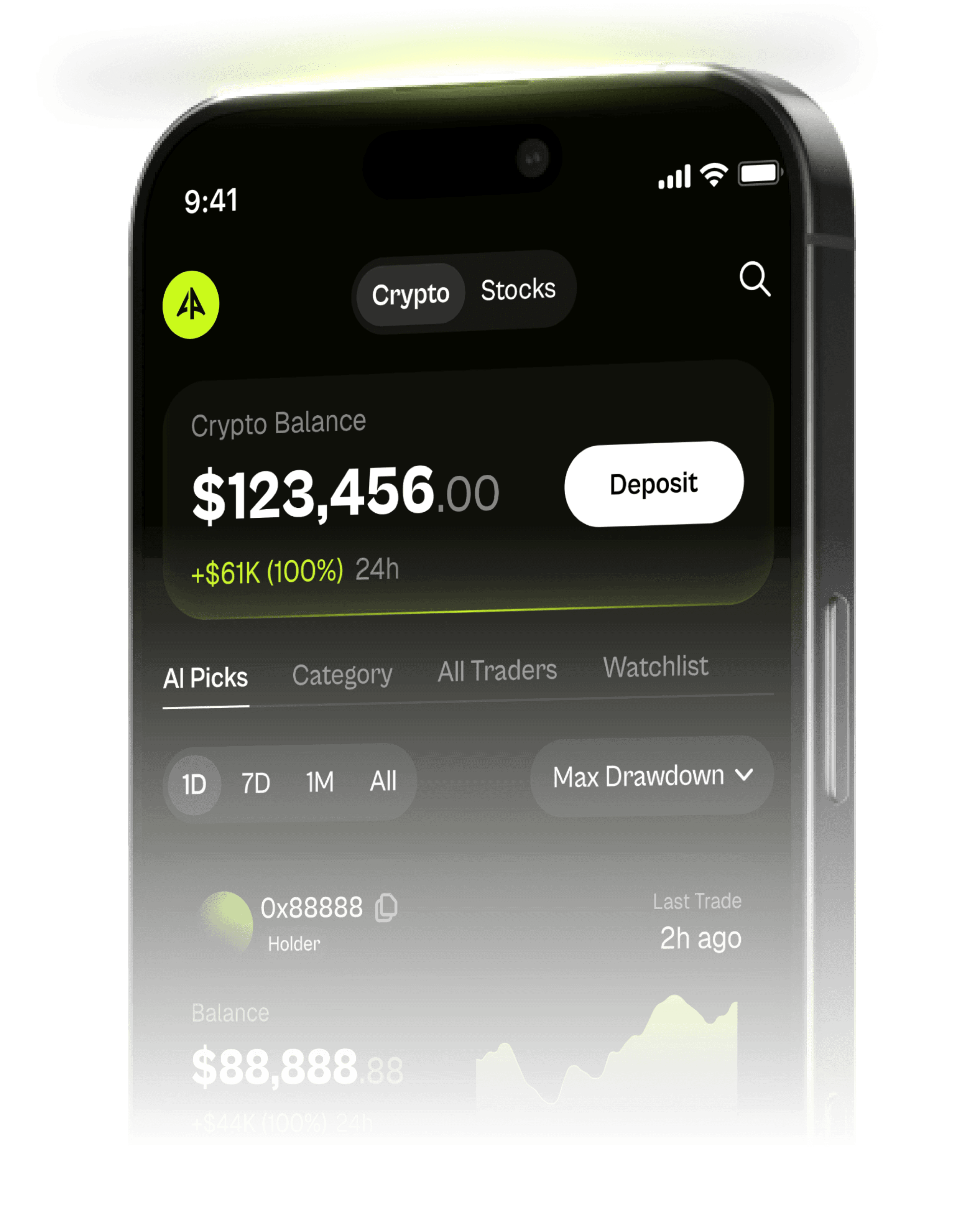 Copy winning traders and strategies across Crypto, Stocks, and Prediction Markets.